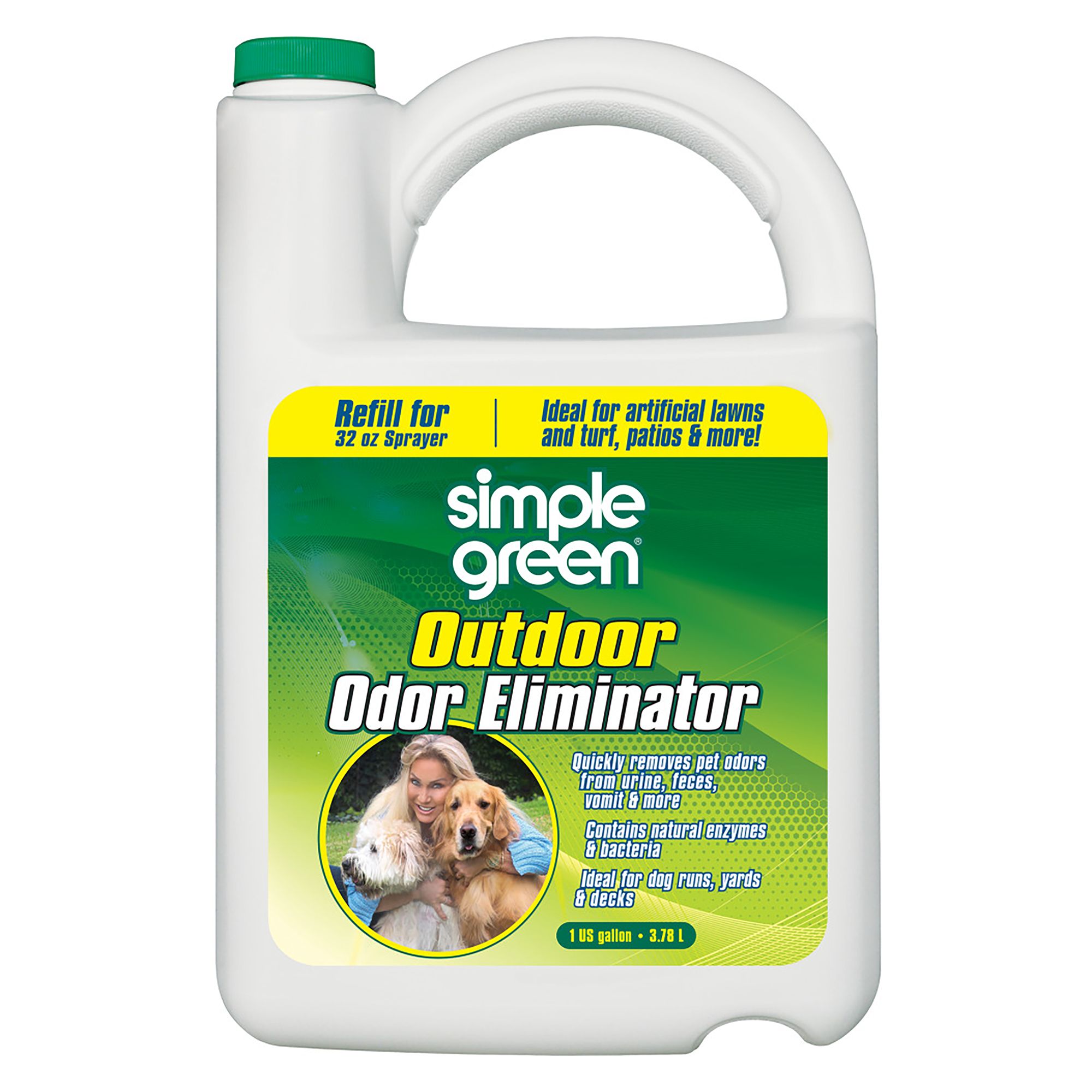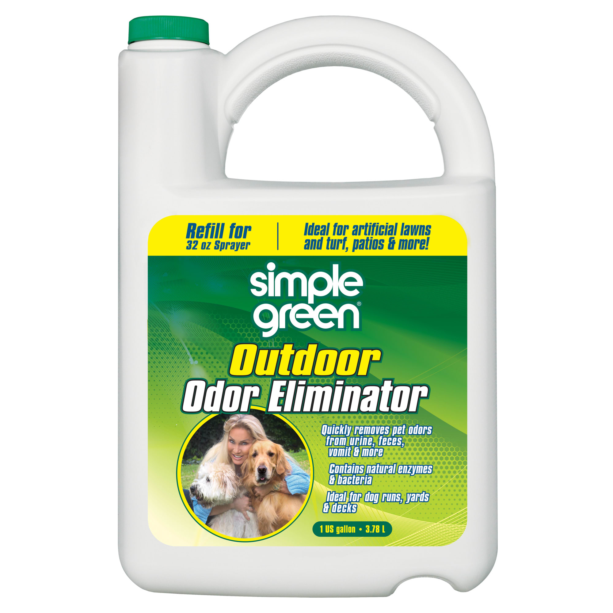 Yard Odor Eliminator Plus Citronella helps eliminate stool and urine odors. Spray on any outdoor surface such as grass plants patios patio furniture and kennels. Spray on any Outdoor Surface Great for Grass Plants Shrubs Patios Patio Furniture Kennels Dog Runs Swing Sets Fences Block Walls or any Other Surface where Pet Odors Arise. Yard Odor Eliminator helps eliminate stool and urine odors. Safe to use on decks patio. Simply mix a small amount of vinegar into a spray bottle filled with some lemon dish soap and shake to combine well. For use on grass plants shrubs patios patio furniture kennels dog runs swing sets fences block walls or any other surface where odors arise due to pets.