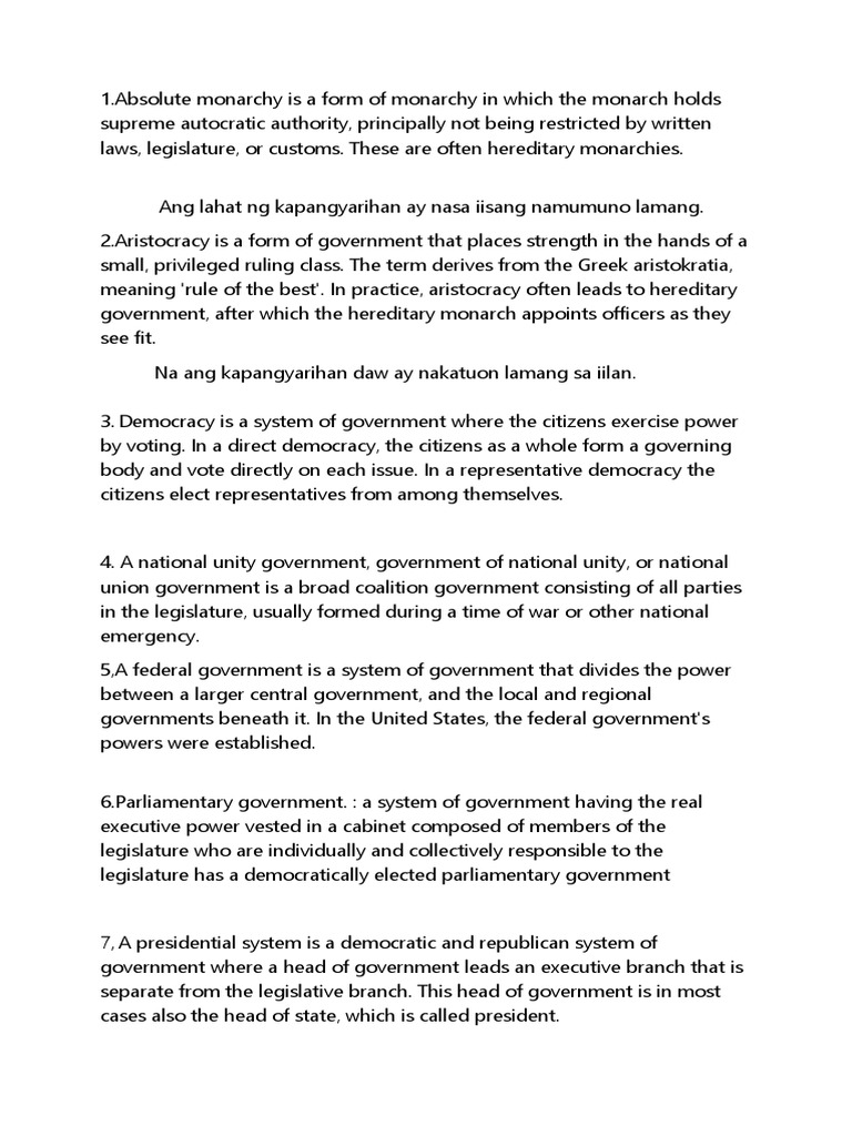 Democracy meaning rule of the people is a system of government in which the citizens exercise power directly or elect representatives from among themselves to form a governing body such as a parliament. A type of government where officials are elected as representatives of the people and must govern according to existing constitutional law that limits the governments power over citizens. In Totalitarianism a group or individual rules without the consent of the.